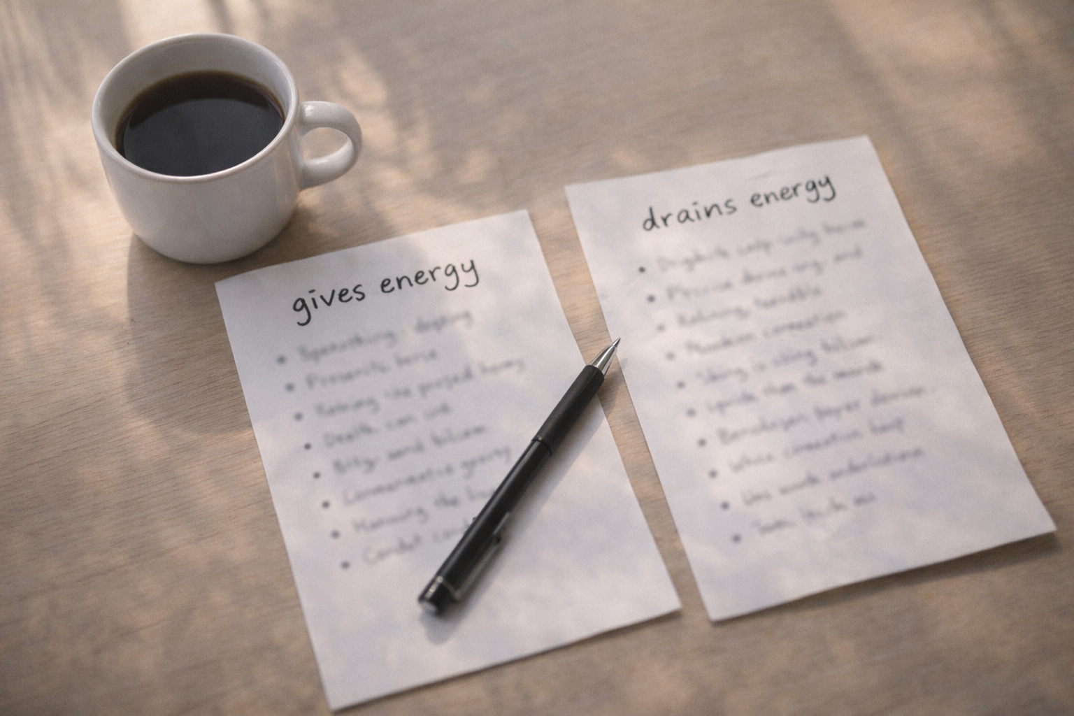 1) Два списка: «что даёт мне силы» и «что меня съедает»